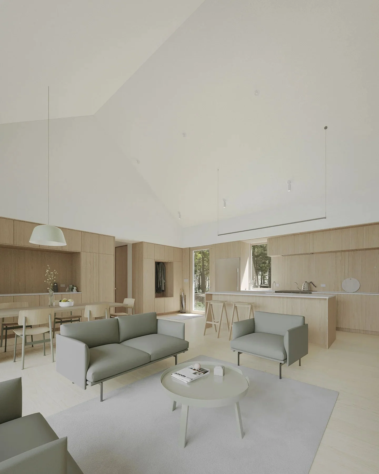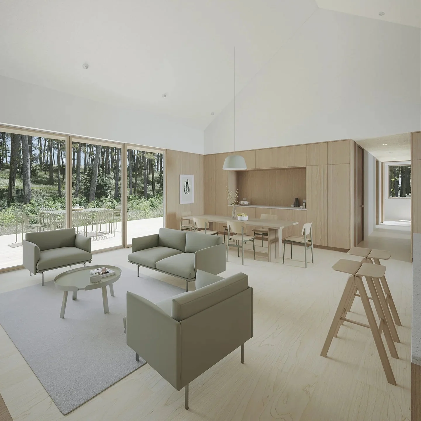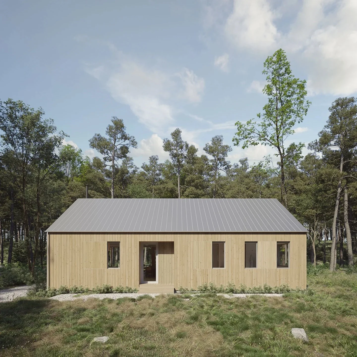 Discover the charm of modern living with our 2 bedroom, 2 bath Scandinavian farmhouse, boasting 1300 square feet of thoughtfully designed space. This single-floor home comfortably sleeps 4 to 6 people, making it perfect for families or small groups. Vaulted ceilings and an open, airy communal area create a sense of spaciousness, while the deck running the length of the backside invites you to enjoy the beauty of the outdoors. The simplicity of this single-floor design caters to a variety of family styles, offering ease and comfort for all. An additional office space provides a quiet retreat for focused work or relaxation, whether you're at a computer or on a yoga mat. Natural light pours in through DEN's signature windows and doors, blending the interior with the natural surroundings and creating a seamless indoor-outdoor living experience. Embrace the elegance and functionality of this modern Scandinavian farmhouse, where every detail is crafted for a serene and stylish lifestyle.