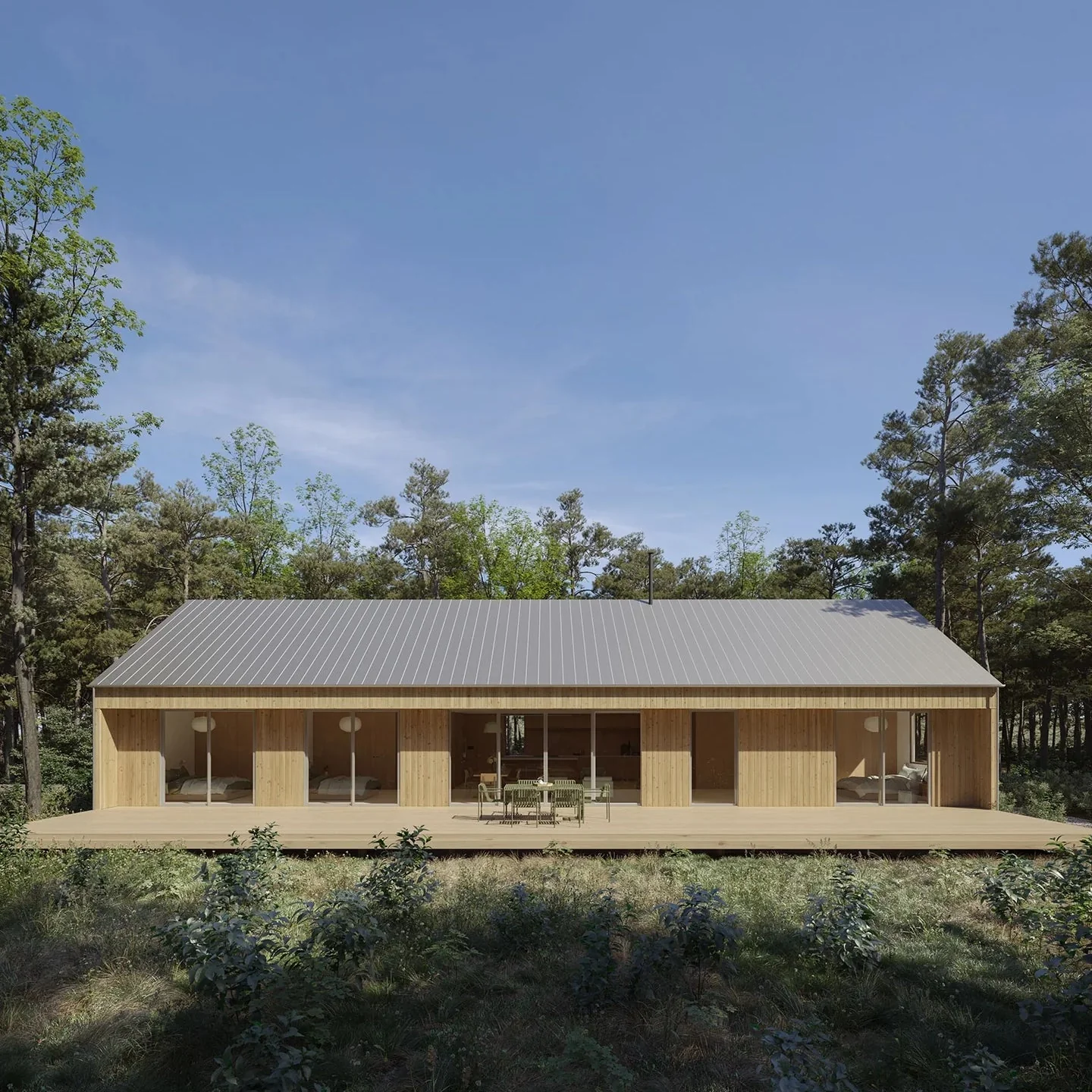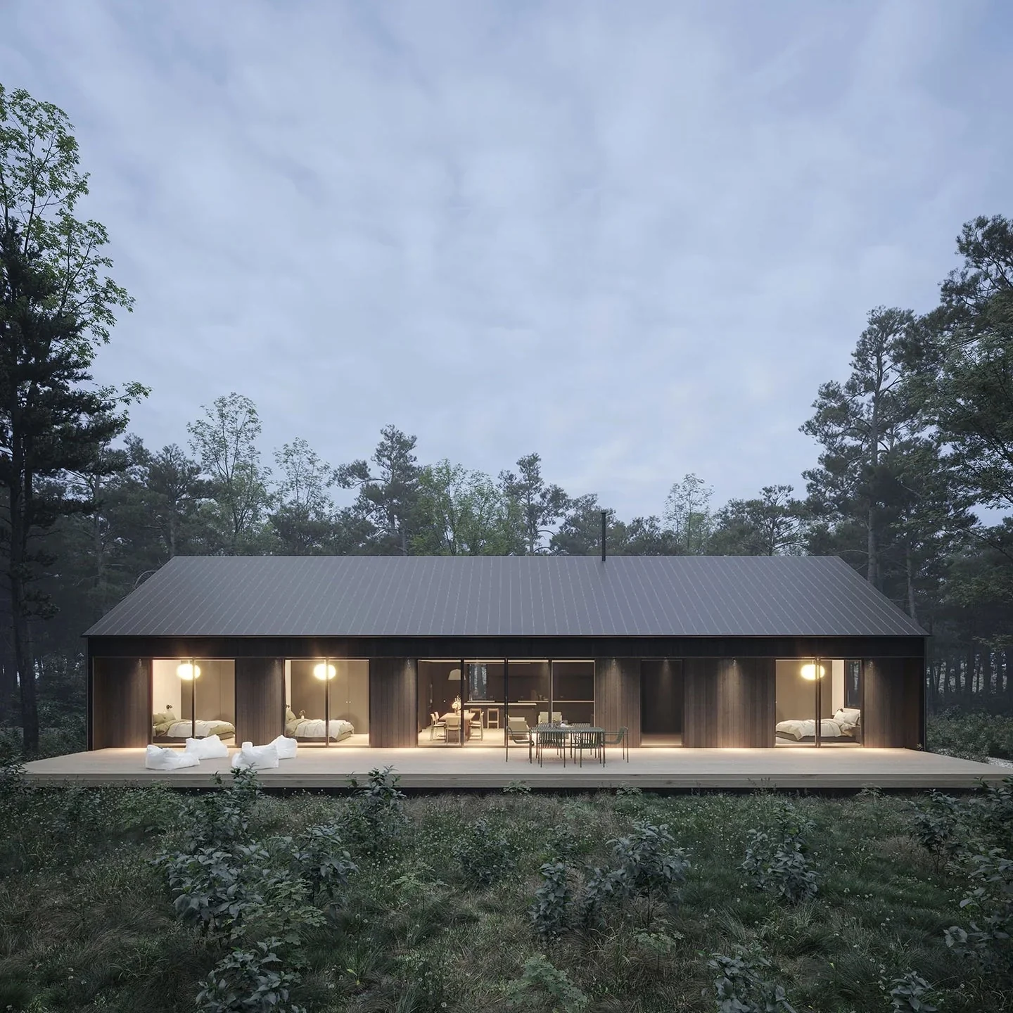 Introducing the epitome of modern Scandinavian farmhouse living: a stunning 3 bedroom, 3 bath single-floor home that exudes simplicity and versatility. With vaulted ceilings and an open, airy communal space, this design is perfect for families of all styles. The expansive deck running the length of the backside offers a seamless connection to the outdoors, ideal for relaxation and entertainment. Designed with functionality in mind, this home includes a dedicated office space, providing a serene environment for focus time, whether for work or wellness activities like yoga. The simplicity of a single-floor layout ensures ease of access and a comfortable living experience for all. Natural light floods the interior through DEN's signature windows and door designs, creating a warm and inviting atmosphere while offering breathtaking views of the surrounding landscape. Experience the perfect blend of modernity and comfort in this Scandinavian farmhouse, where every detail is crafted for a harmonious and stylish living experience.