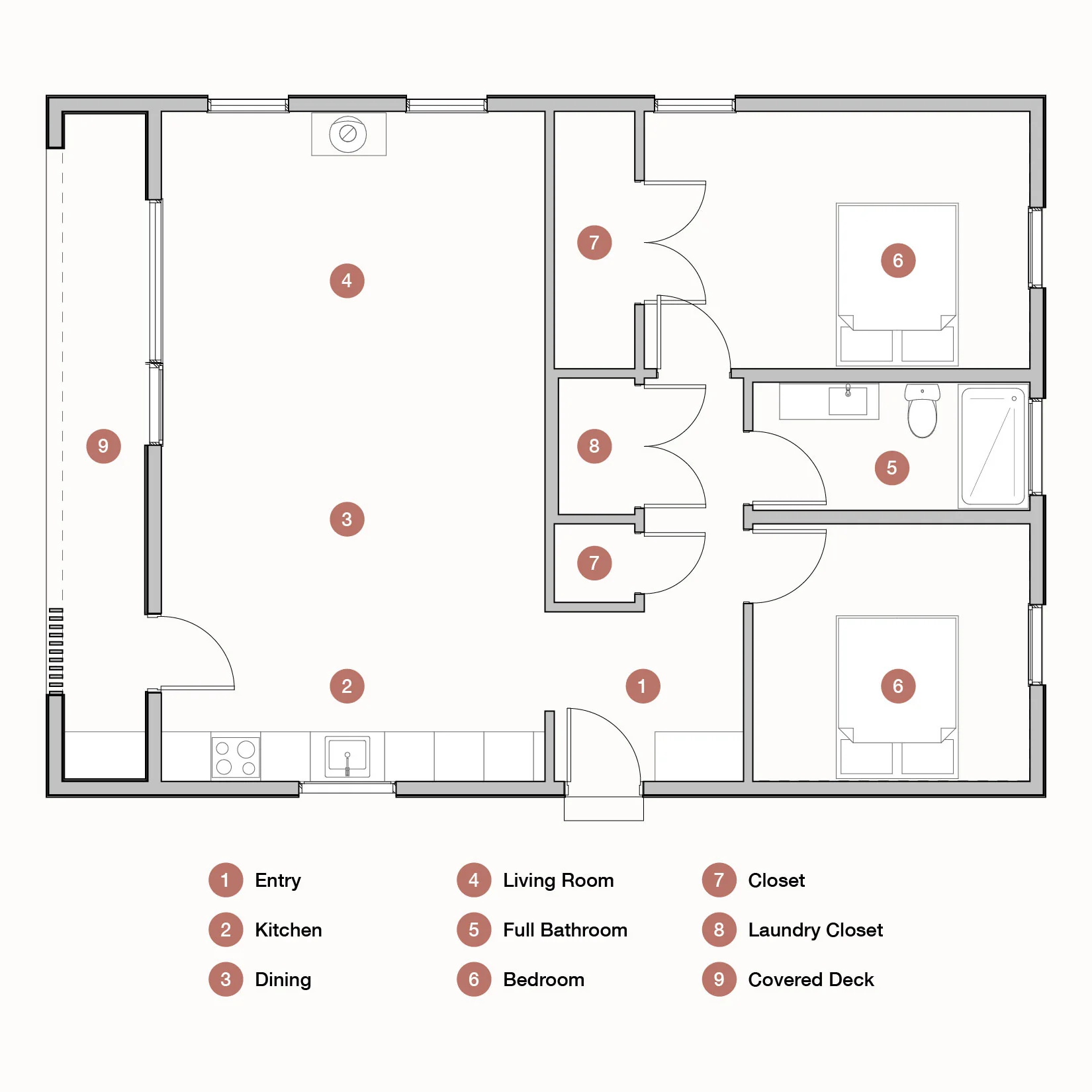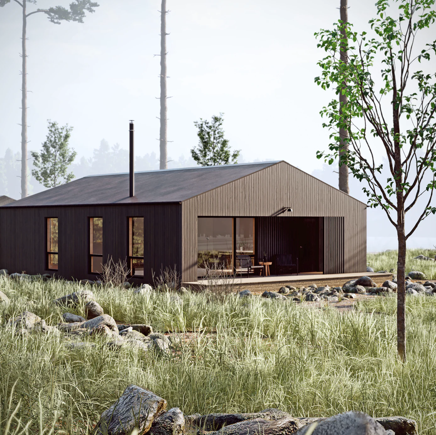 The DEN Essential Series is a collection of homes designed for simplicity. The Essential House is special in its constructibility—specifying readily available materials in exact standard sizes, meaning you can access materials wherever you are and get building right away. That means less cuts, less waste, less labor...you get the idea! Never has a family outpost or vacation home been so easy to construct and to start making memories inside of right away. This is the perfect modern cabin to choose for anyone looking to start a life of adventure in a DEN as soon as the end of this season.