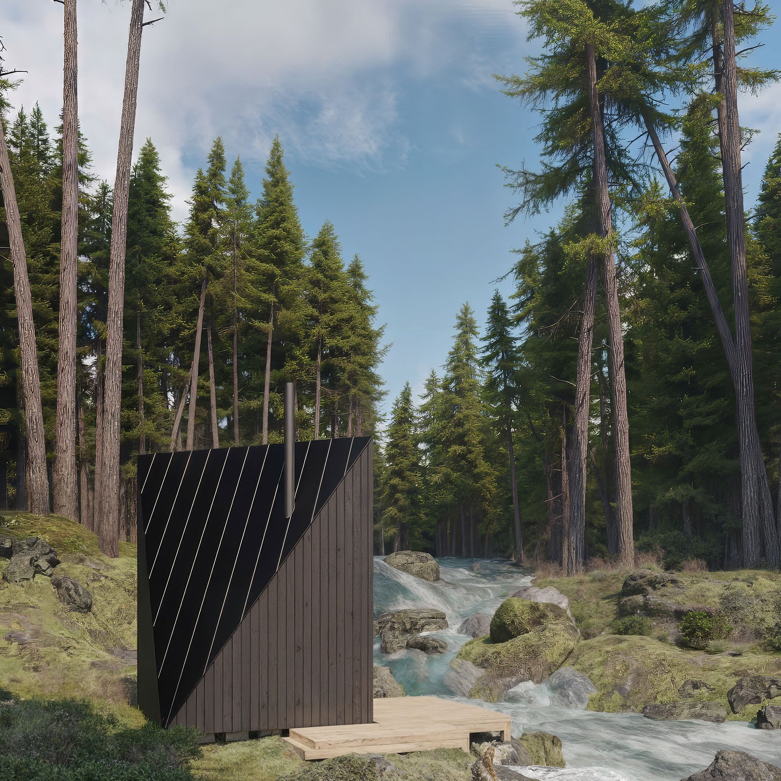 Striking, spacious, and unlike anything else, the Prism Sauna transforms the traditional sauna into a geometric statement piece. Designed for 4 people, its sculptural asymmetrical form captures light and shadow from every angle—turning a simple wellness ritual into an immersive experience. The sharply sloped roofline and faceted silhouette create a compact yet dramatic retreat that assembles in just a few days. Choose from a fully glazed front, a partial window, or a solid wall to tailor privacy and performance to your setting. Compatible with both electric and wood-burning stoves, it delivers authentic heat within a futuristic shell. Offered exclusively as the Sweaty Package, the Prism includes the complete DIY sauna plan for a refined, ready-to-build experience. Iconic, efficient, and built to endure—the Prism Sauna redefines modern heat therapy.