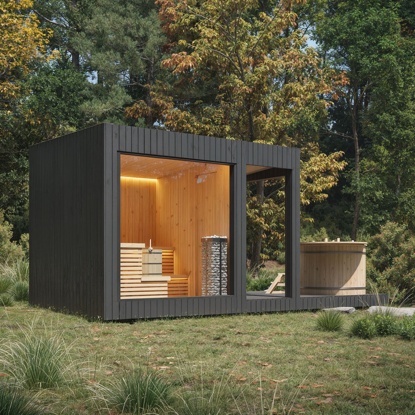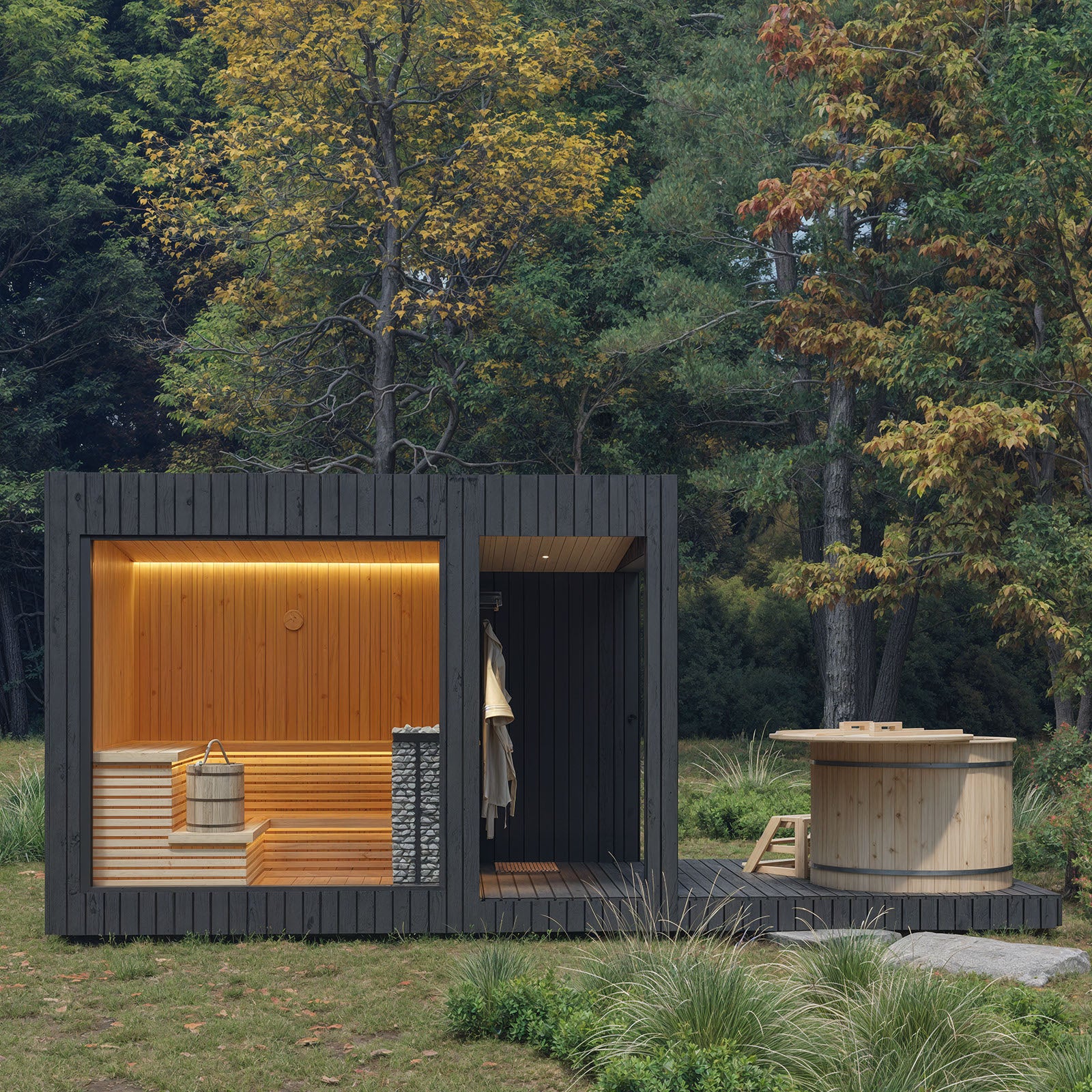 Stylish, versatile, and built for four, the outdoor Modern Sauna is a compact backyard wellness retreat you can assemble yourself in just a few days. Its flexible design lets you select a full-height glass window, a half-window, or a solid wall—making it simple to customize for your budget, climate, and property. Compatible with both electric sauna heaters and wood-burning stoves, it delivers an authentic hot sauna experience no matter your preference. The Sweaty Package includes the base DIY sauna kit, while the Extra Sweaty Package adds a deck and enclosed changing room to elevate relaxation. Minimalist, durable, and customizable—this is the ultimate modern sauna redefined for home, cabin, or retreat.