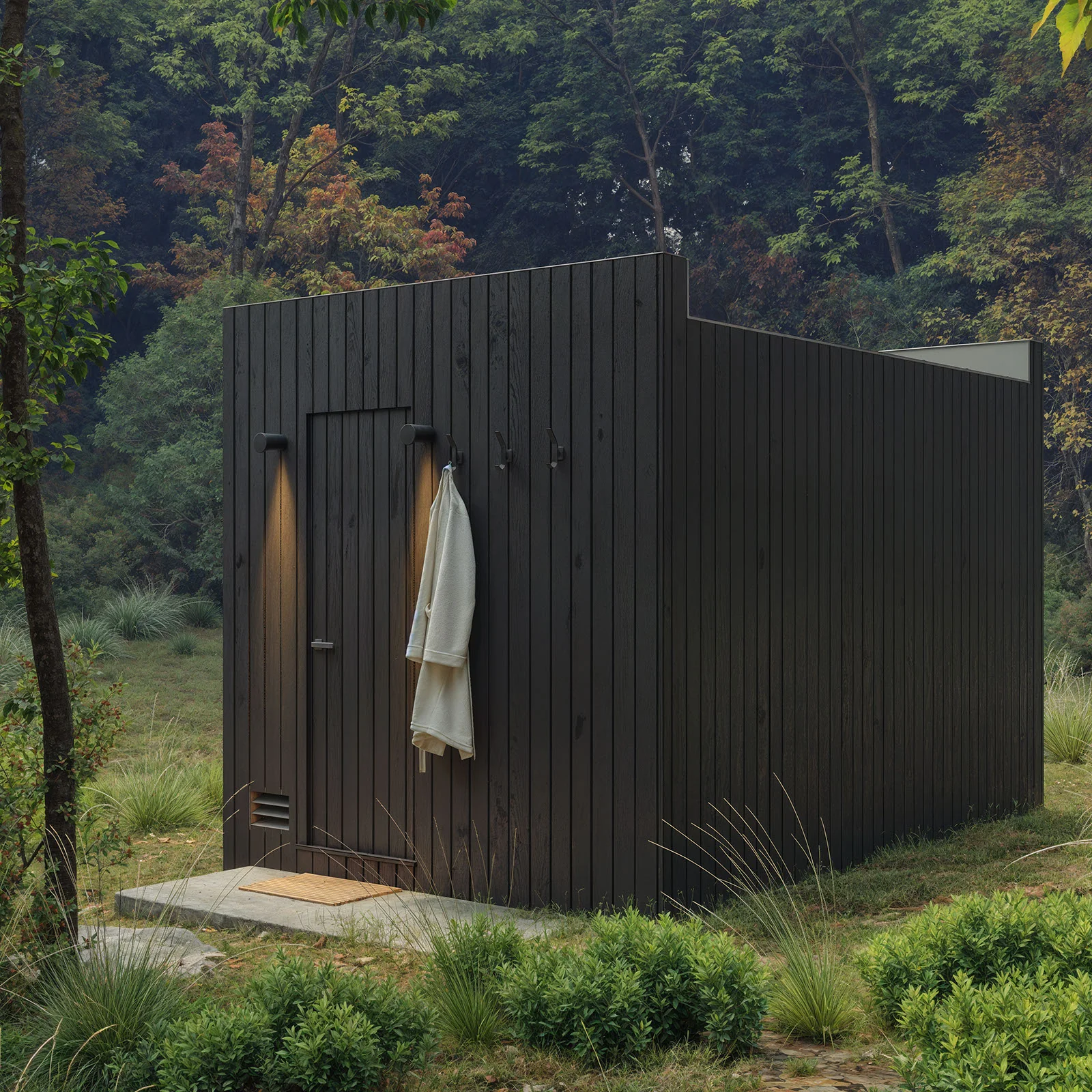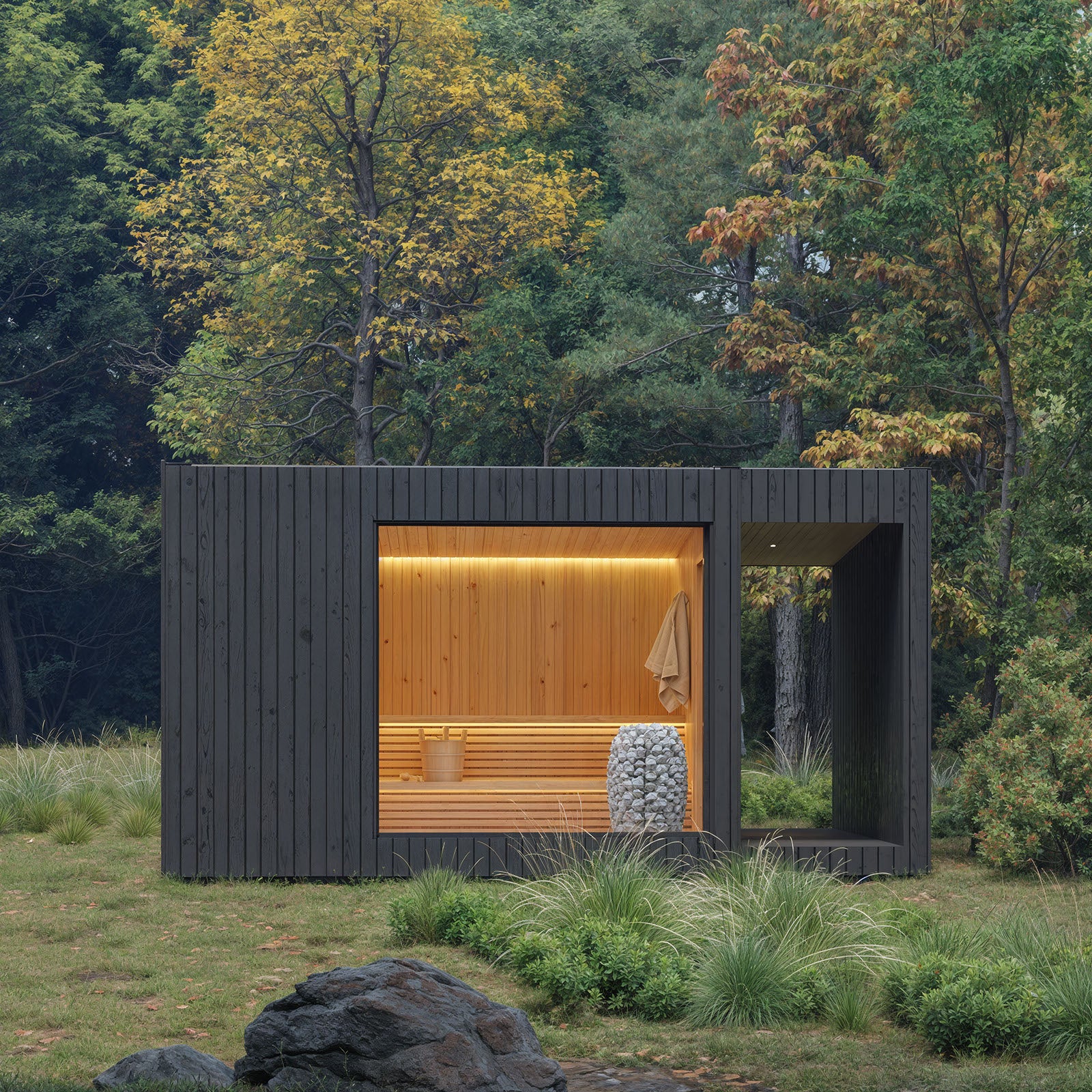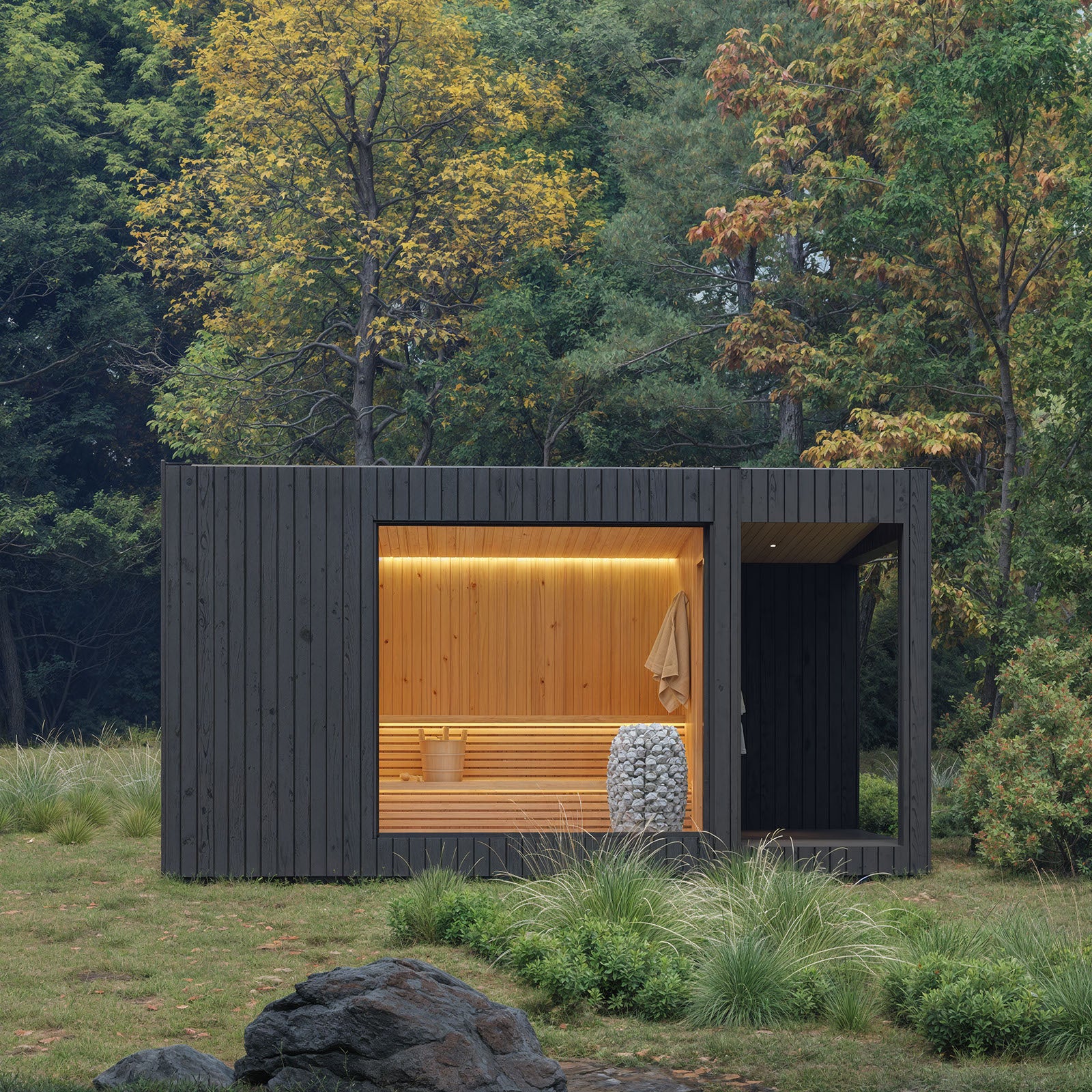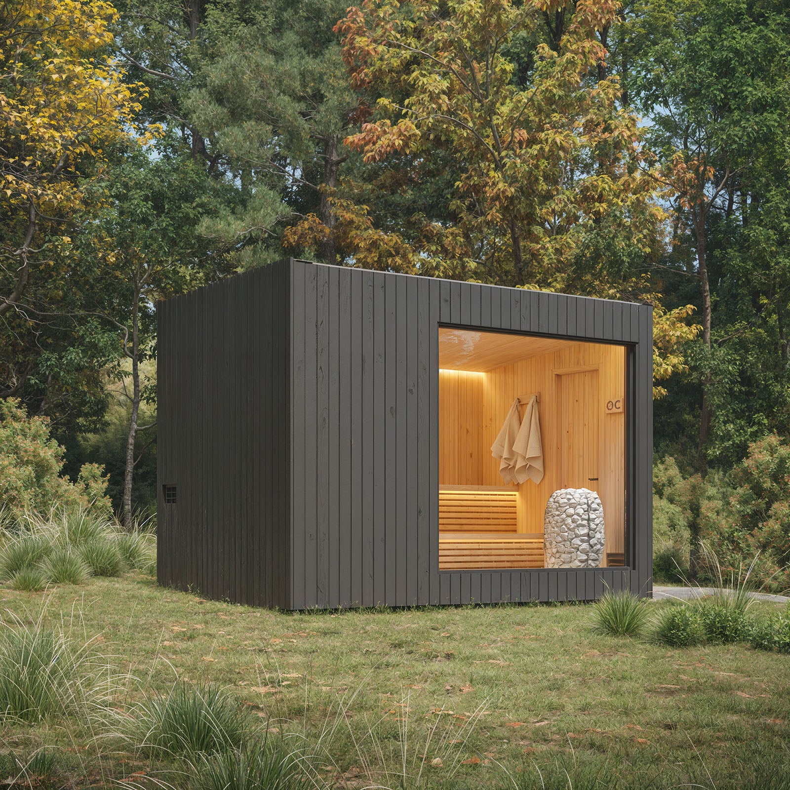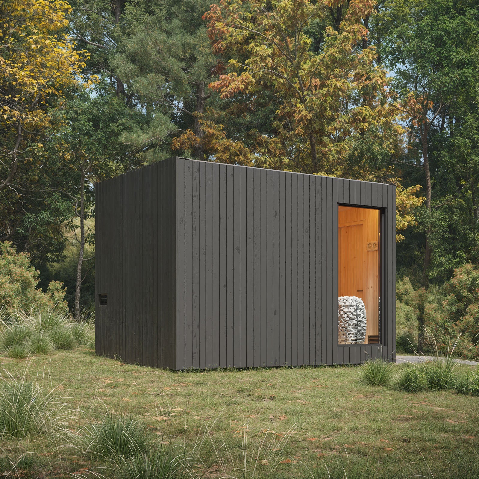 Spacious, adaptable, and crafted for groups of eight to ten, the modern outdoor Sauna offers a backyard wellness escape you can build yourself in just a few days. The design allows you to choose between a full-height glass wall, a partial window, or a solid exterior—making it easy to fit your budget, setting, and style. Compatible with both electric sauna heaters and traditional wood-fired stoves, it provides an authentic heat experience however you prefer. The Sweaty Package includes the standard DIY sauna kit, while the Extra Sweaty Package expands the setup with a deck and a covered changing room. Contemporary, durable, and customizable—this is the modern outdoor sauna reinvented for home, cabin, or retreat.
