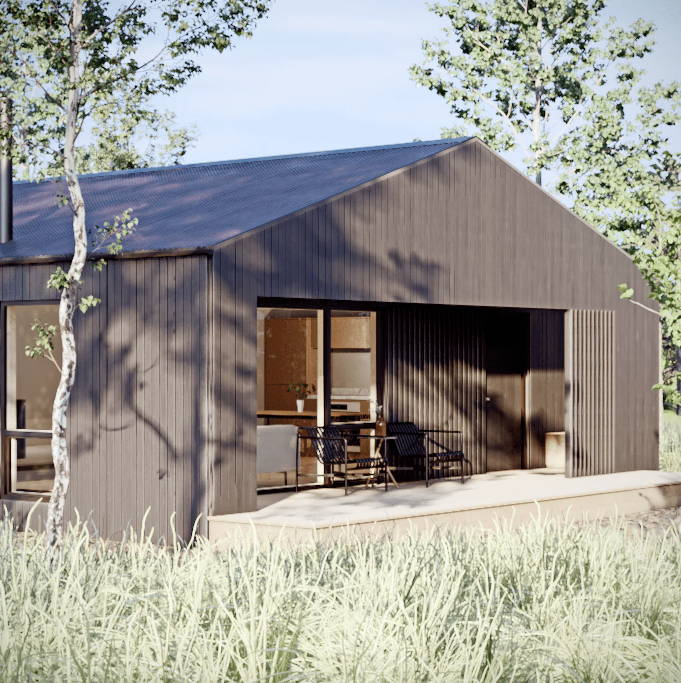 The DEN Essential Series is a collection of homes designed for simplicity. The Essential House is special in its constructibility—specifying readily available materials in exact standard sizes, meaning you can access materials wherever you are and get building right away. That means less cuts, less waste, less labor...you get the idea! Never has a family outpost or vacation home been so easy to construct and to start making memories inside of right away. This is the perfect modern cabin to choose for anyone looking to start a life of adventure in a DEN as soon as the end of this season.