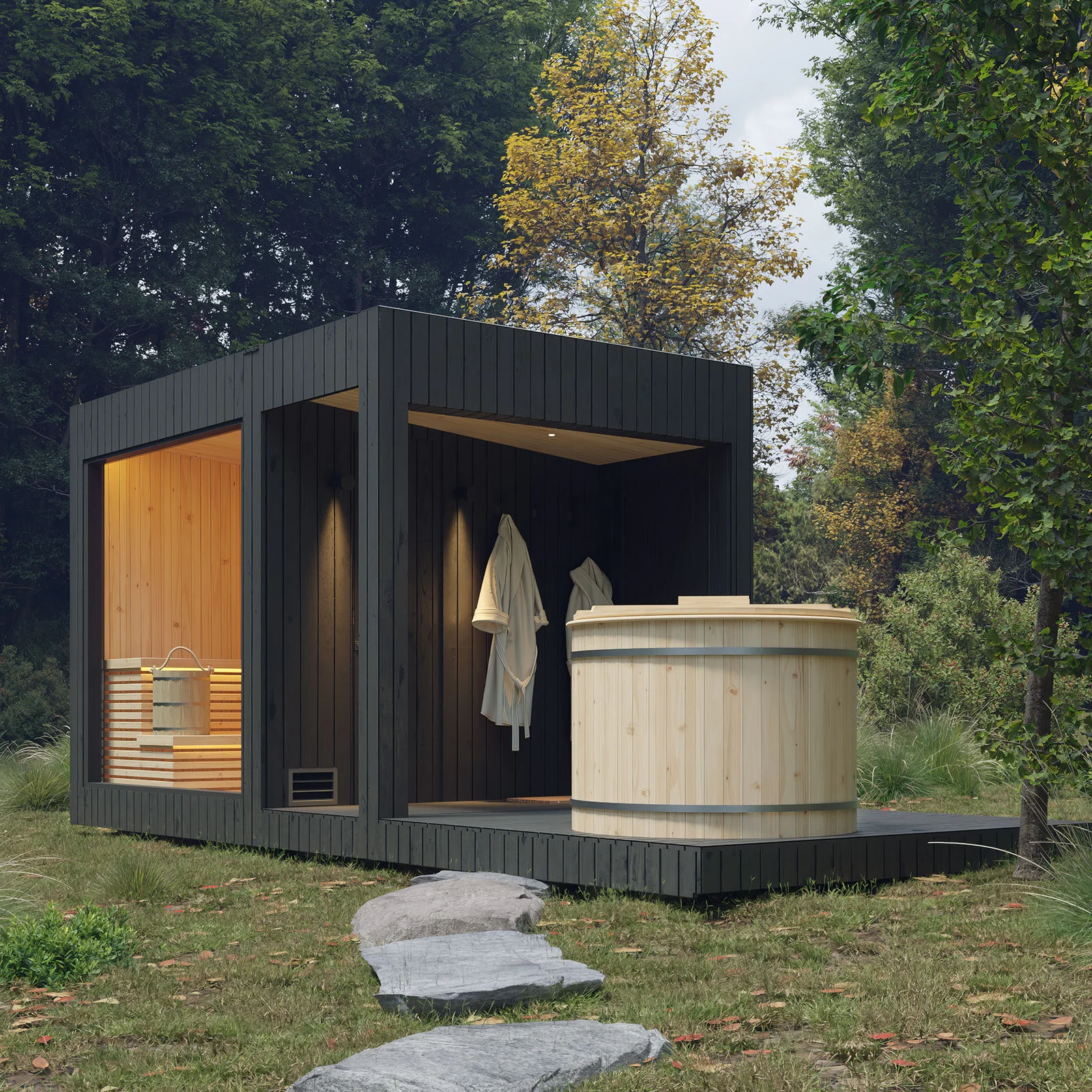 Stylish, versatile, and built for four, the outdoor Modern Sauna is a compact backyard wellness retreat you can assemble yourself in just a few days. Its flexible design lets you select a full-height glass window, a half-window, or a solid wall—making it simple to customize for your budget, climate, and property. Compatible with both electric sauna heaters and wood-burning stoves, it delivers an authentic hot sauna experience no matter your preference. The Sweaty Package includes the base DIY sauna kit, while the Extra Sweaty Package adds a deck and enclosed changing room to elevate relaxation. Minimalist, durable, and customizable—this is the ultimate modern sauna redefined for home, cabin, or retreat.